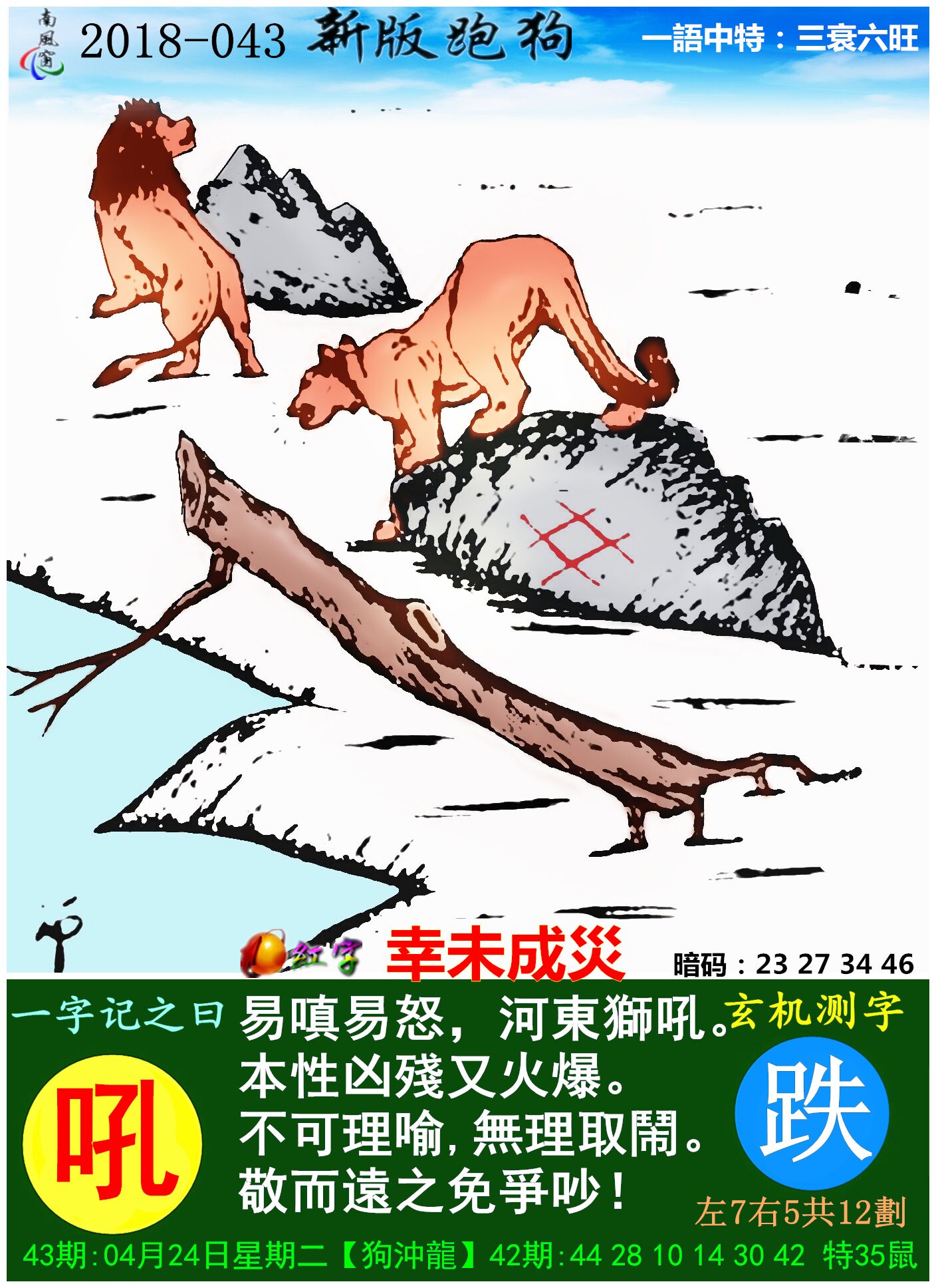 043期:新版跑狗一字記之曰:【吼】 玄機測字《跌》