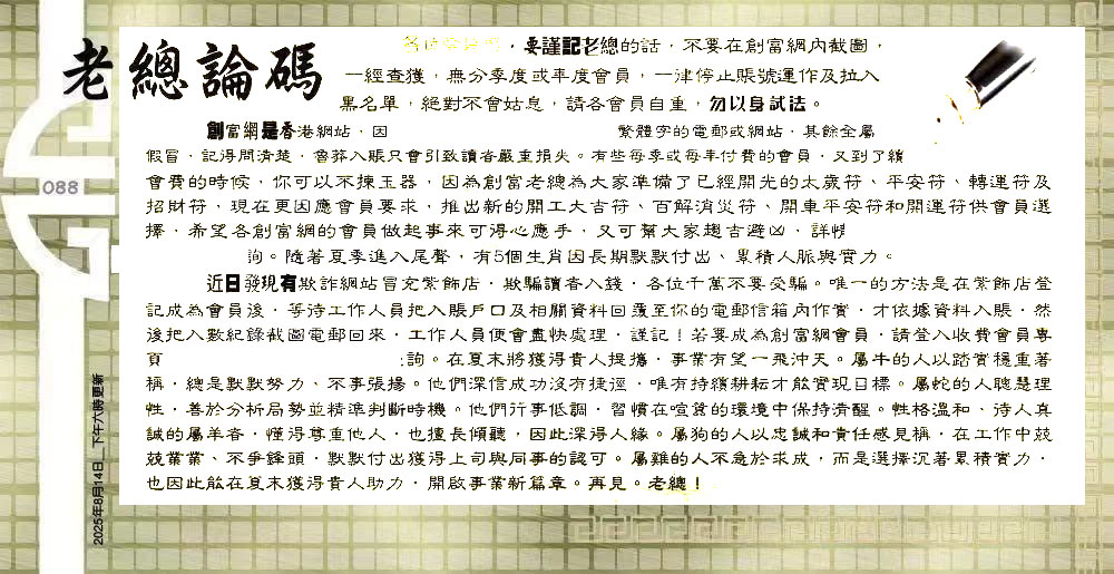 088期:六合皇金句/老总论码/萧公子/林大师/五行夺码/老总信箱截