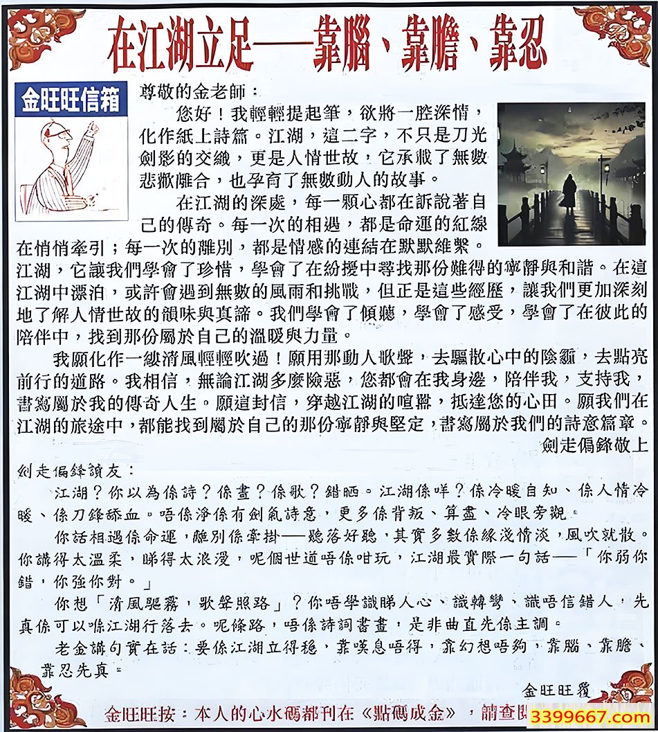 096期:金旺旺信箱彩民推荐→→《在江湖立足——靠腦、靠膽、靠