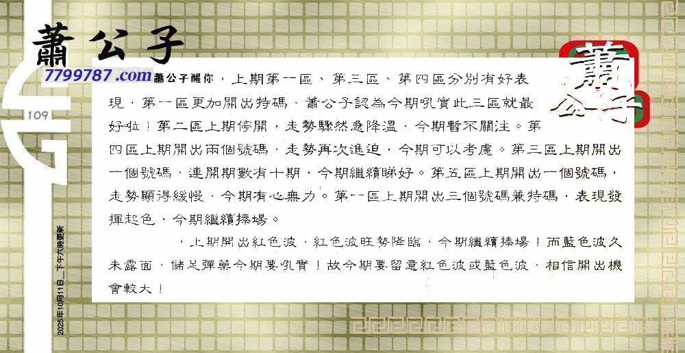 109期:六合皇金句/老总论码/萧公子/林大师/五行夺码/老总信箱截