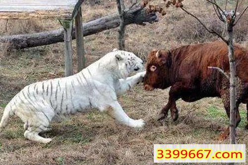 2025年第112幽默猜测(力量的较量):一只老虎闯进草地想要吓退老牛,不料老牛毫不示弱,用角直冲。虎扑牛撞,尘土飞扬,谁也不肯退让。最后两败俱伤,双双跌坐,竟被路过的小猴子笑到直拍手。.....本期图片会给我们的带来什么样的玄机呢?