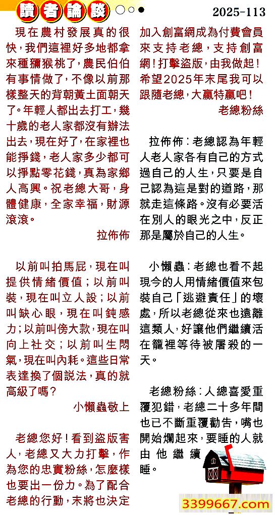 3.老總您好!看到盗版害人,老總又大力打擊,作為您的忠實粉絲,怎麼樣也要出一份力。為了配合老總的行動,末將也決定加入創富網成為付費會員來支持老總,支持創富網!打擊盗版,由我做起!希望2025年末尾我可以跟隨老總,大赢特赢吧!====老總粉絲