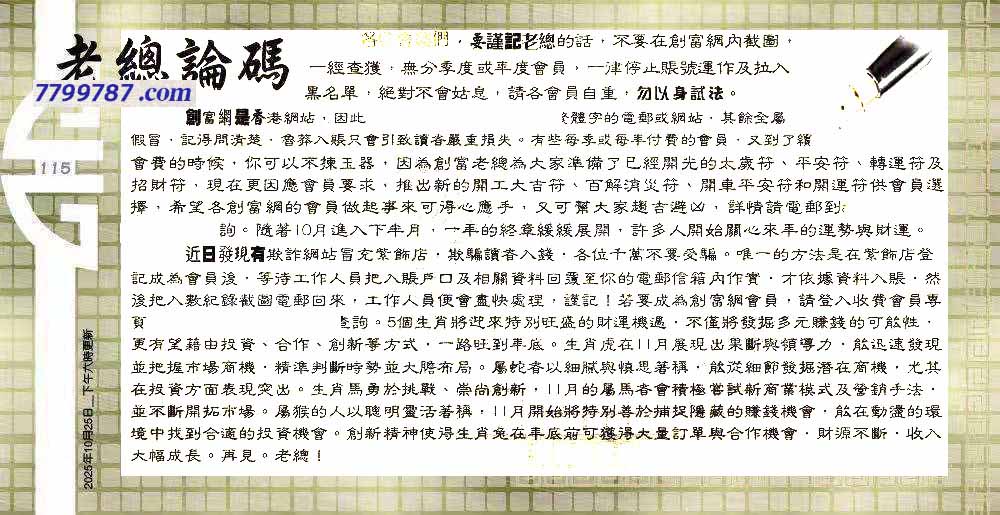 115期:六合皇金句/老总论码/萧公子/林大师/五行夺码/老总信箱截