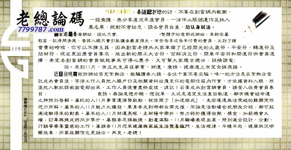 119期:六合皇金句/老总论码/萧公子/林大师/五行夺码/老总信箱截