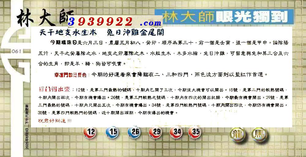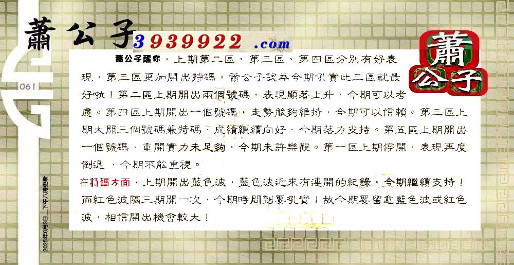 061期:六合皇金句/老总论码/萧公子/林大师/五行夺码/老总信箱截