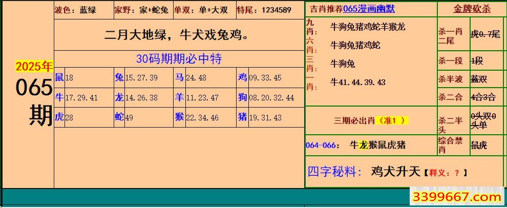 | 主题 :065期:小鱼儿30码期期中+幽默猜测 |