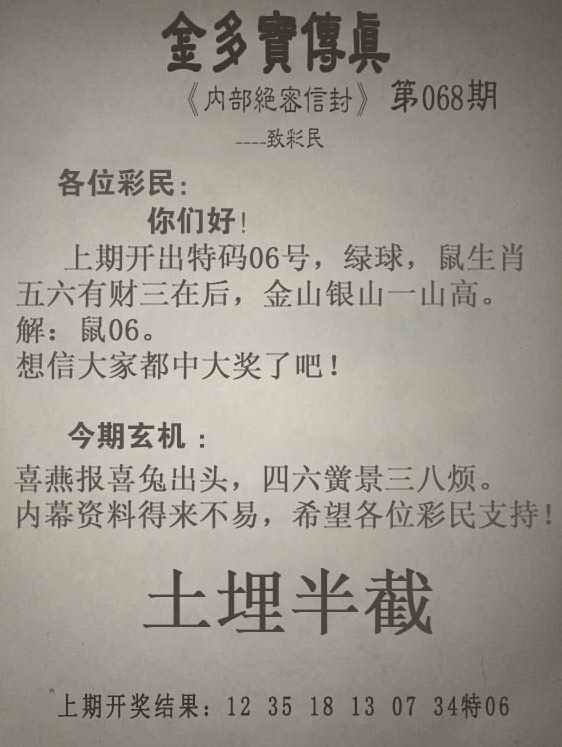 | 主题 :068期:另版【金多寶傳真】 |