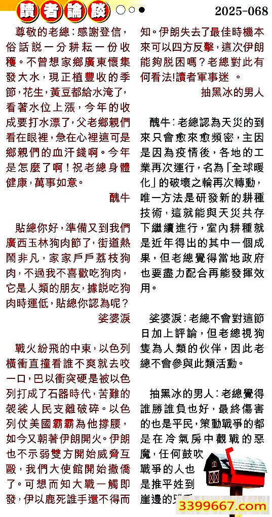 | 主题 :068期:彩民推荐〖貼信讀者論壇〗 |