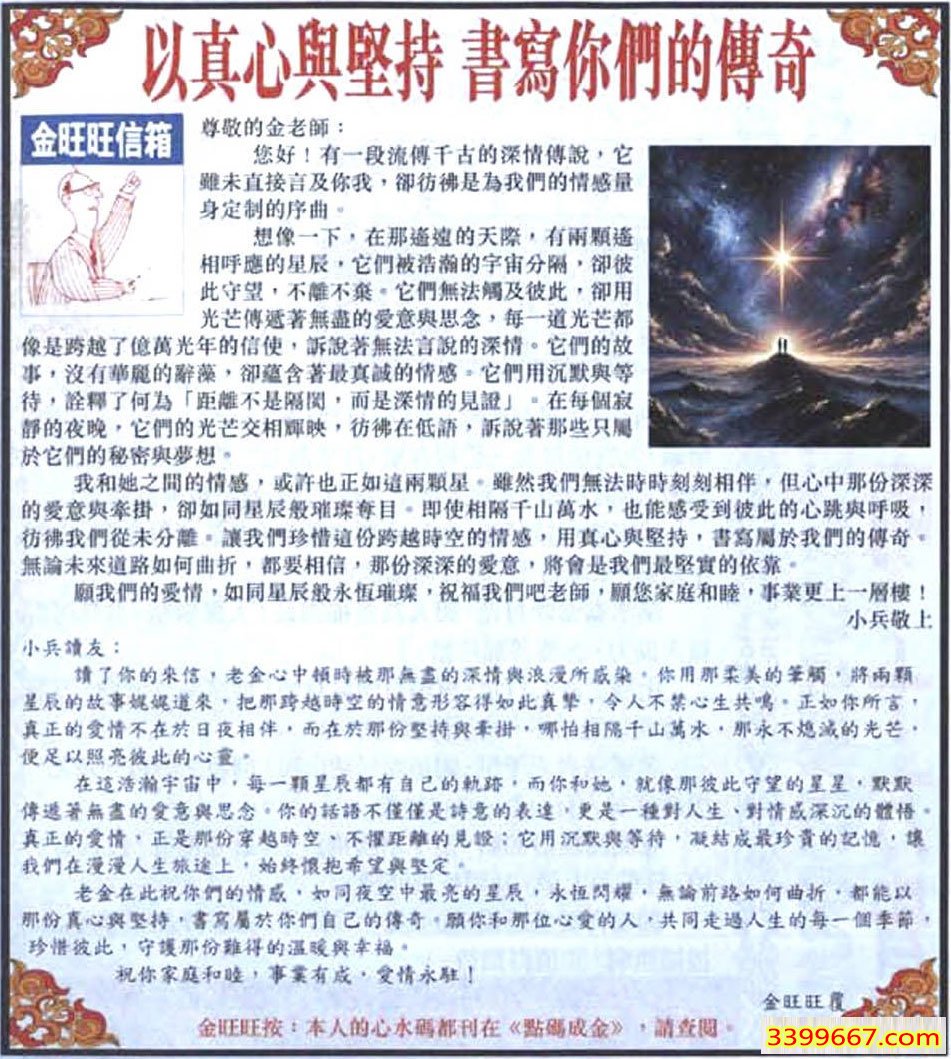 | 主题 :068期:金旺旺信箱彩民推荐→→《以真心與堅持 書寫你們的傳奇》 |