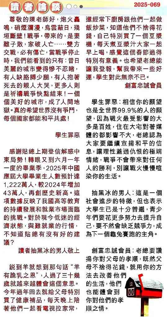 | 主题 :069期:彩民推荐贴信读者论坛 |