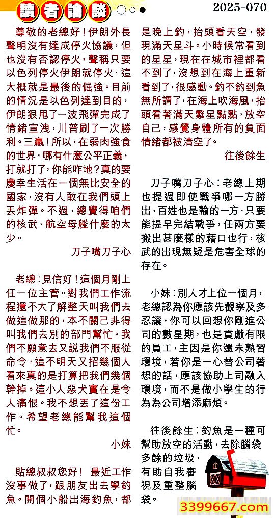 | 主题 :070期:彩民推荐〖貼信讀者論壇〗 |