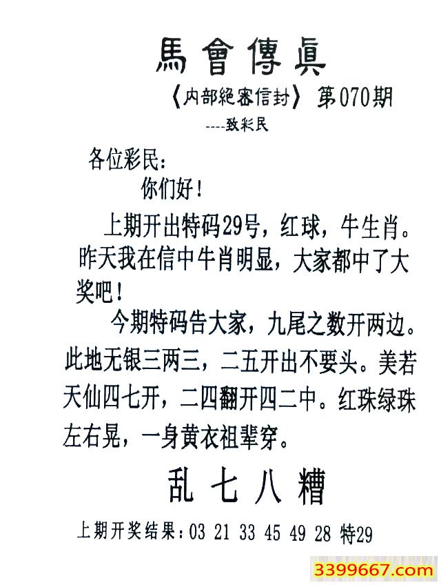 | 主题 :070期:首发推荐:≮馬會傳眞≯→(香港正版) |