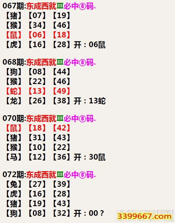 | 主题 :072期:东成西就Ⅲ必中⑧码 |