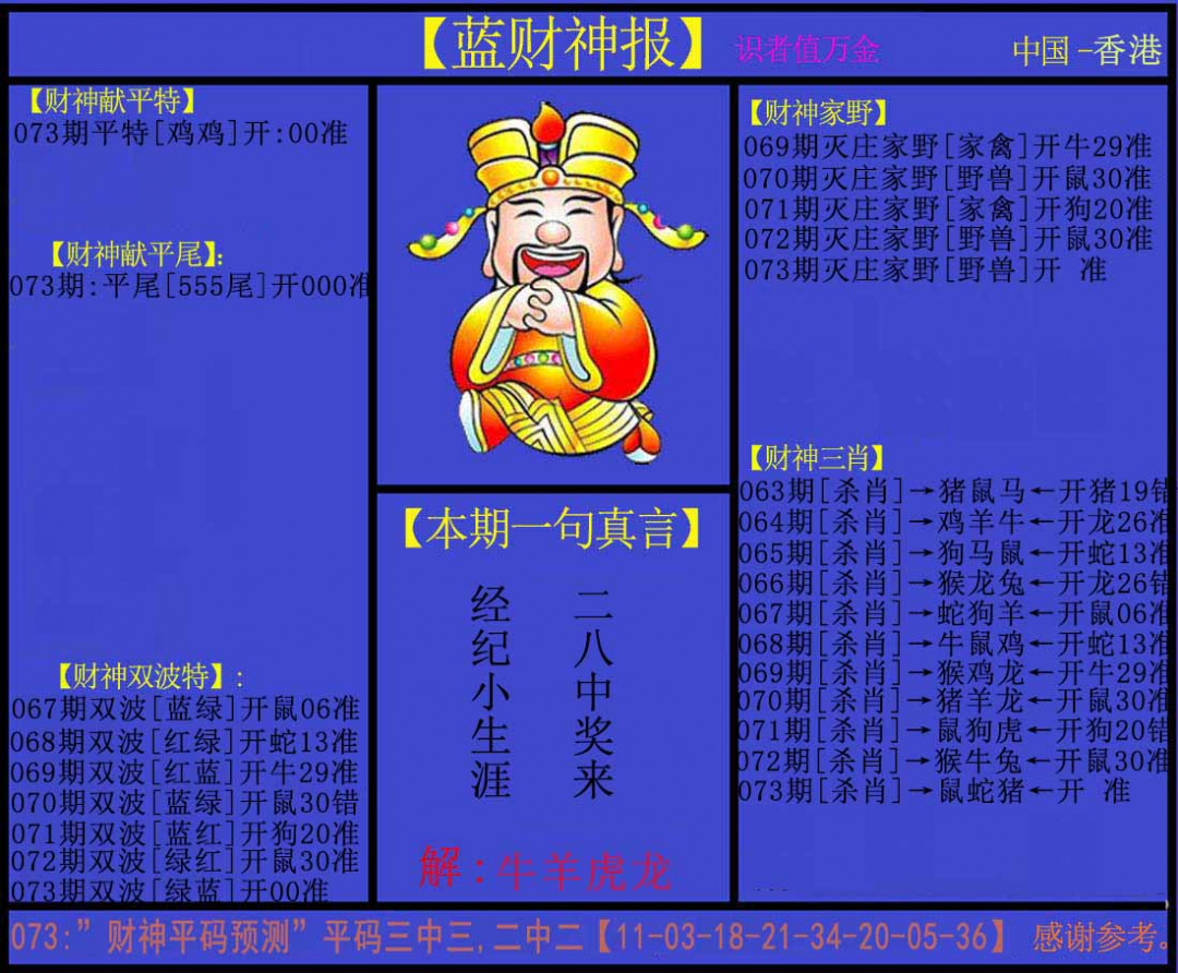 | 主题 :073期:蓝财神 |