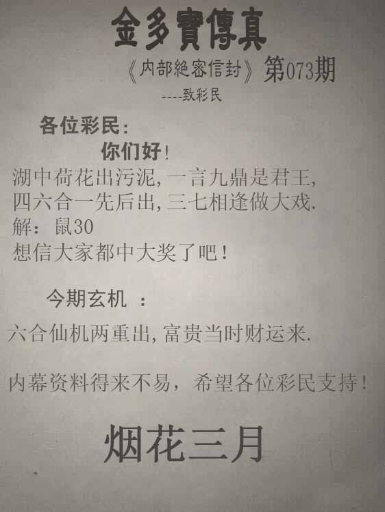 | 主题 :073期:金多寶傳真 |