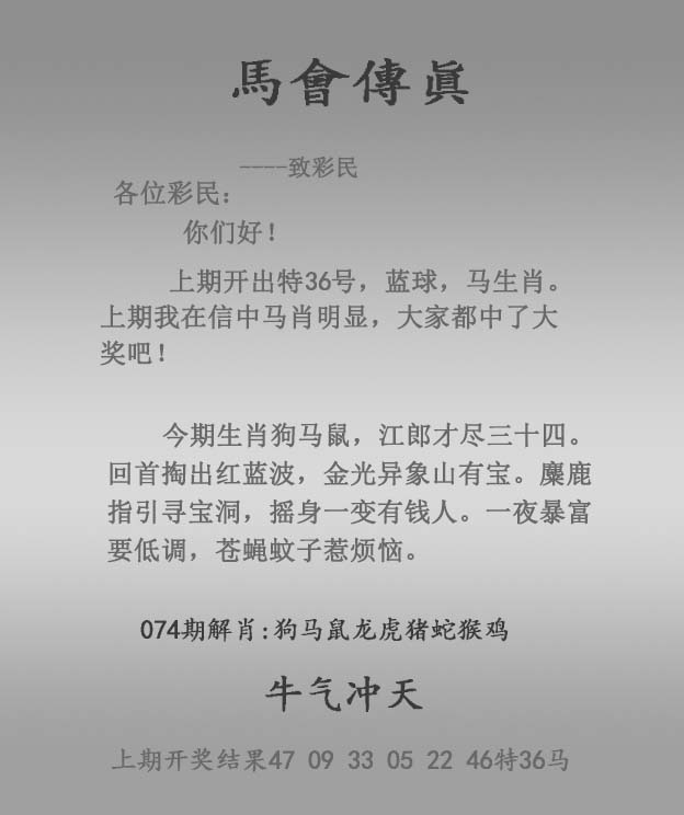 | 主题 :074期:正马会传真 |