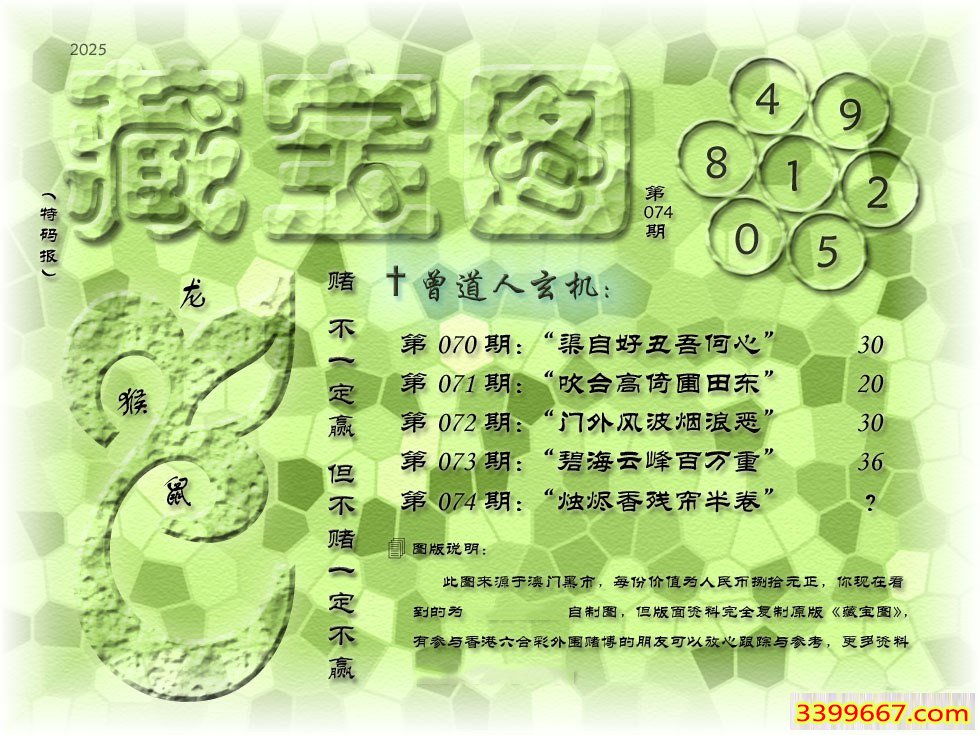 | 主题 :074期藏寶圖 新:烛烬香残帘半卷 老:远客初闻已断肠 禁:猪 禁:3尾 |