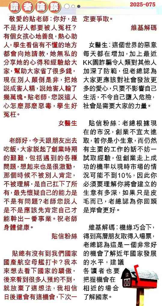 | 主题 :075期:彩民推荐贴信读者论坛 |