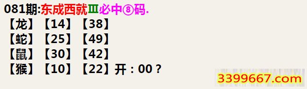 | 主题 :081期:东成西就Ⅲ必中⑧码 |