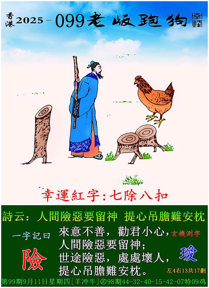 主题 :099期老版跑狗一字記之曰:【險】 玄機測字:《璦》