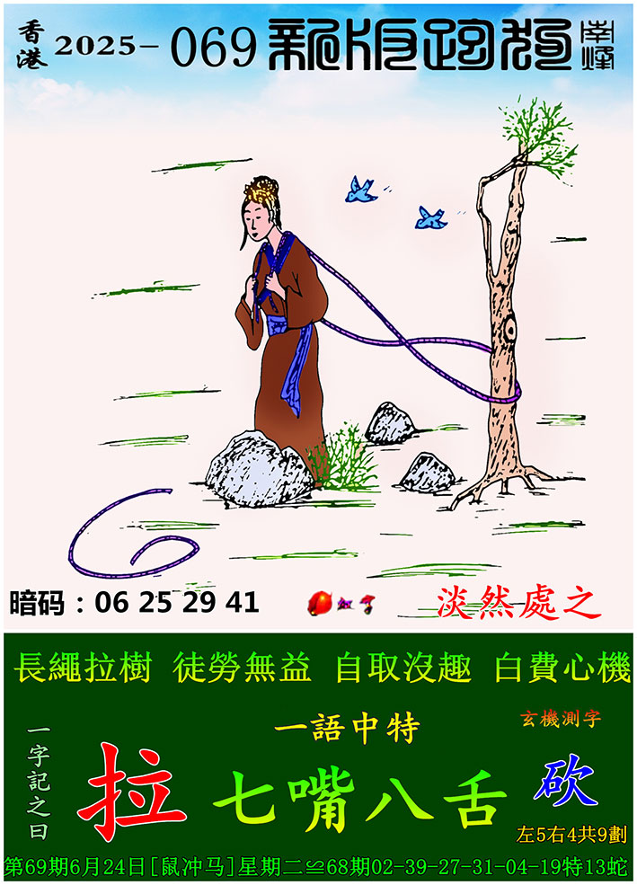 | 主题 :069期:新版跑狗一字記之曰【拉】 玄機測字:【砍】 |