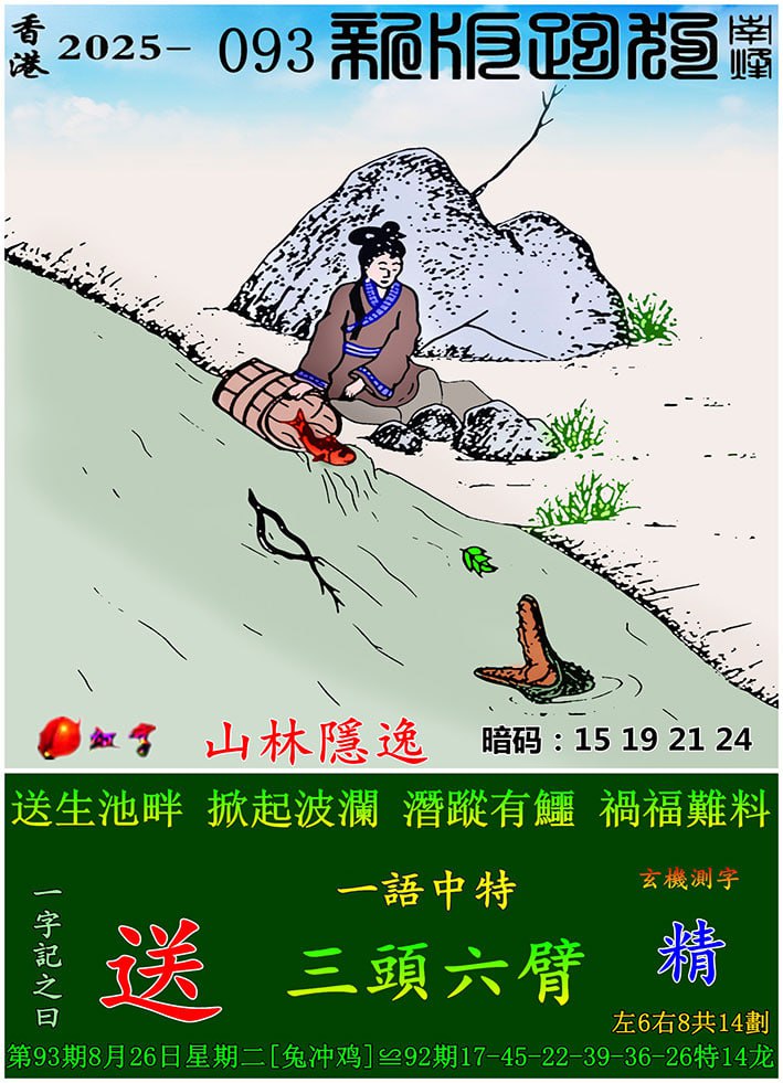 主题 :093期:新版跑狗一字記之曰【送】 玄機測字:【精】